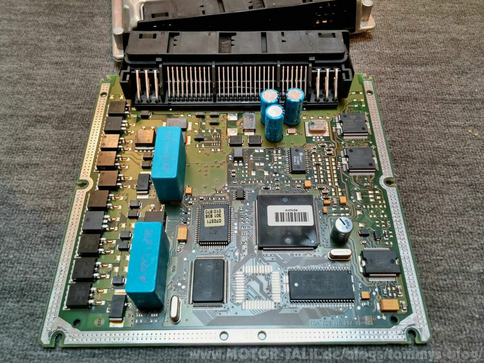 Dann war es soweit, ich schaute mir die EDC15C4-Motorsteuerung an und musste feststellen dass ich mit meinen bisherigen Tools nicht ins Steuergerät kam. Die erste Lösung war den Chip von jemandem auslöten, bespielen und wieder einlöten zu lassen. Damit lief der Wagen dann schon richtig gut (157 KW / 213 PS, Leistungsdiagramm in meiner Fahrzeug-Gallerie), auch wenn die Software noch lange nicht perfekt war. Dann stand irgendwann Weihnachten vor der Tür, das Thema wurde als "Prio F" erstmal geparkt. In den letzten Wochen hab ich mich dann intensiv mit dem Thema Motorsteuerung befasst und eine Lösung gefunden Software aufs Steuergerät aufzuspielen ohne den Flash-Baustein auslöten zu müssen. Und damit ging der Wahnsinn dann los..