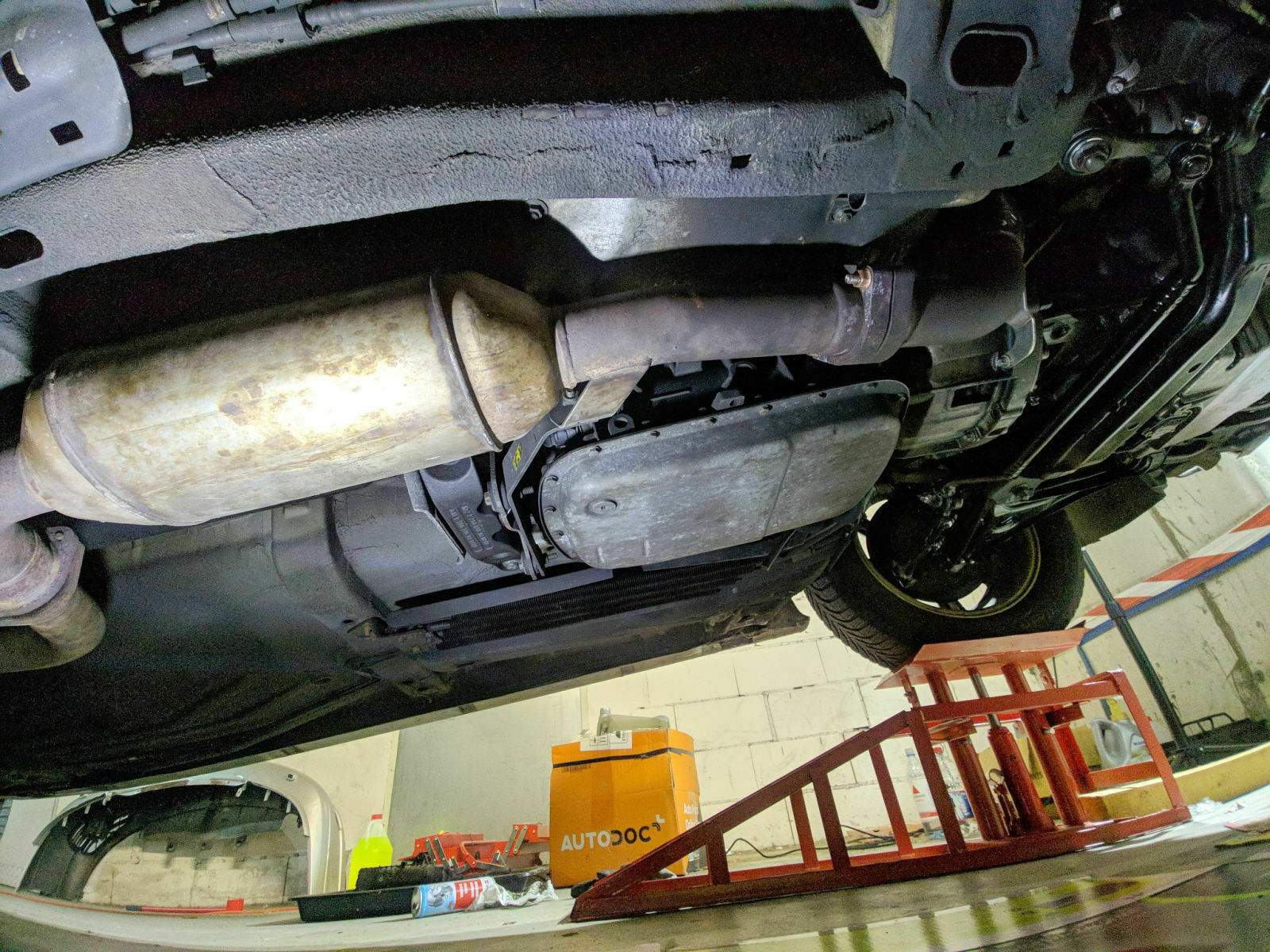 Im März 2019 ging es dann ans Eingemachte. Ich besorgte mir Auffahrrampen mit Stempelwagenhebern, einen weiteren normalen Wagenheber und Böcke. Die Frontschürze kam ab, der LLK, in welchem neben Öl auch ein paar kleine Metallsplitter drin lagen (aber nur auf der Eingangsseite, bis zum Ausgang kam nix) wurde durch einen neuen ersetzt. Der LLK-Lüfter wurde getestet und der Motor selber erstmal ohne Lader laufen gelassen um zu schauen, ob dieser etwas abbekommen hat.