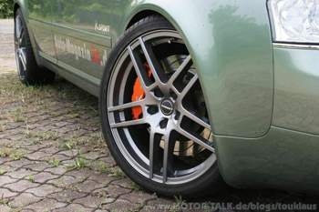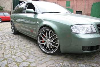 da ich ende Januar auf der BAB A9 einen faustgroßen Stein eingesammelt habe musste ich zwei neue Reifen und eine Felge anschaffen, da die Audi Felge mit 511 Euro pro Stück zu Buche schlägt, habe ich aml ne Alternative drauf gemacht...