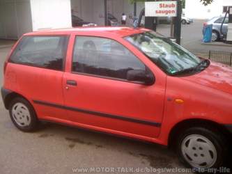 Es ist ein 95er Punto 55S ohne ZV, mit abgelaufenen Airbagsprengsatz, einem ausgeblichenem Rot, mit ein paar Benutzerspuren (aber diesmal darf man wirklich sagen, dass es von den Vorbesitzer kommt) und einem nicht mehr schließendem Fahrerschloss.