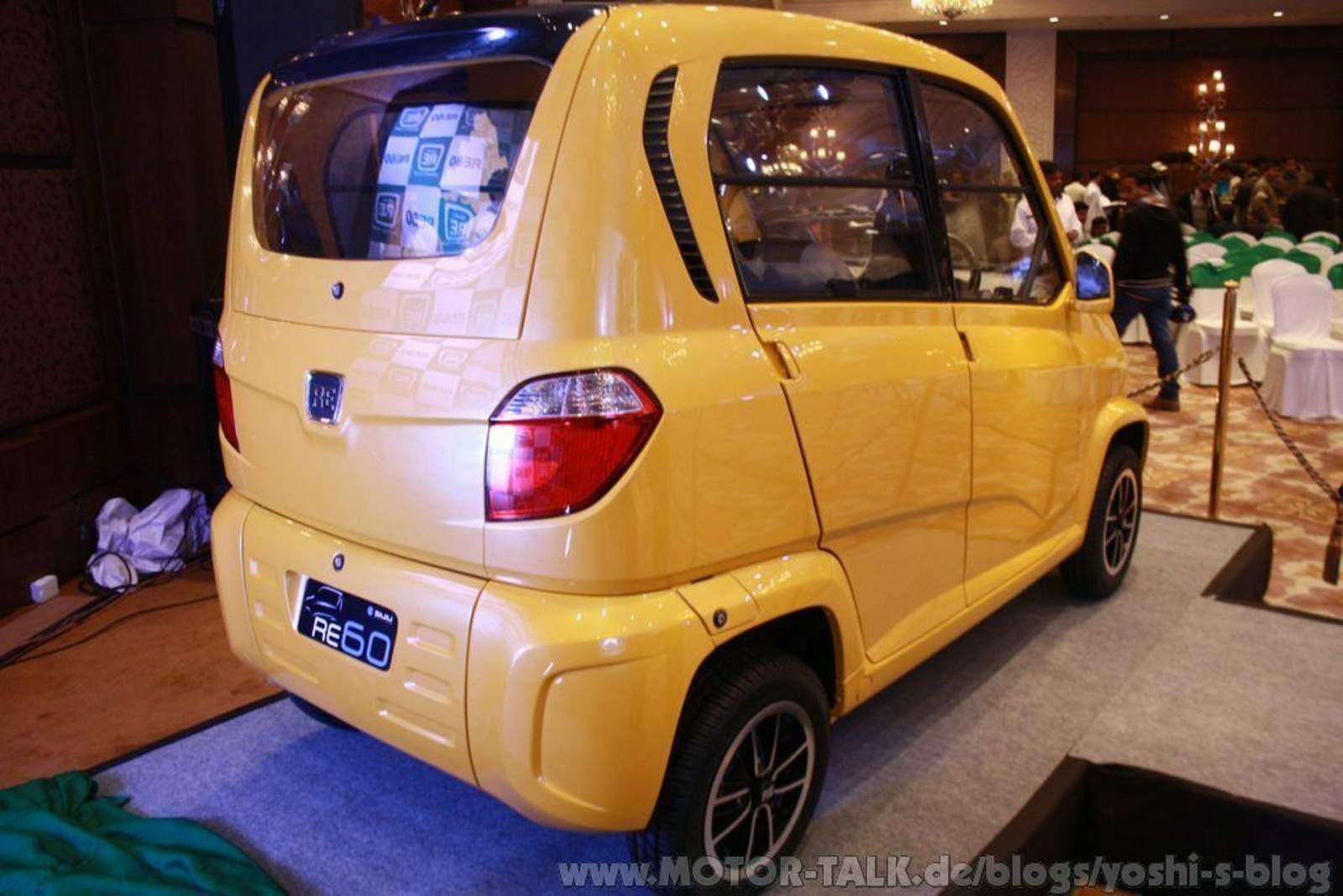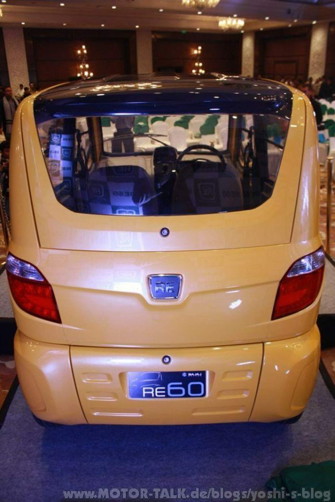Der RE60 Kleinstwagen wird mit Taxameter ab Werk ausgeliefert,. Zielt also nicht primär auf den Privatmarkt, sondern ist eher für die vielen Rikschafahrer in der 3. Welt gedacht. Und der wird verkauft werden - Hundertausendfach! Denn zur Zeit sind alleine in Indischen Städten FÜNF MILLIONEN Dreiräder unterwegs (meist kleine Bajaj 175cm³ Einzylinder Zwei- und Viertakter und 400cm³ Diesel)...