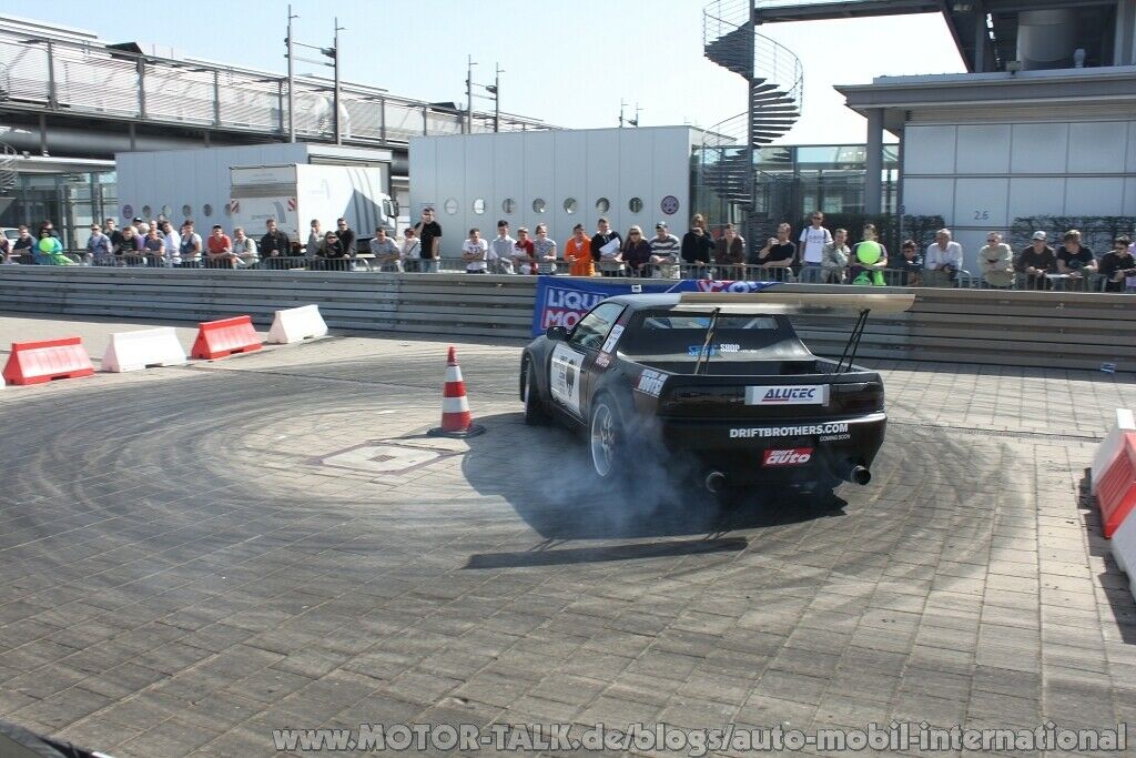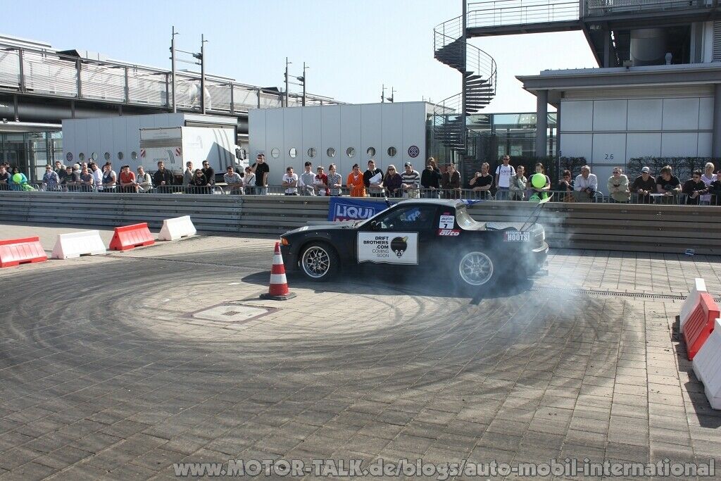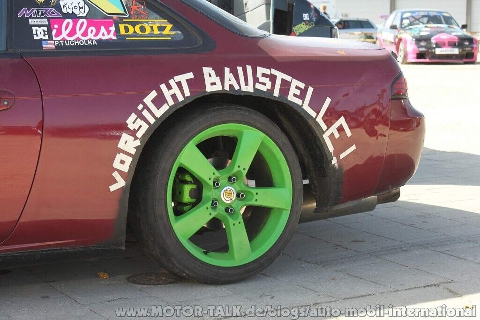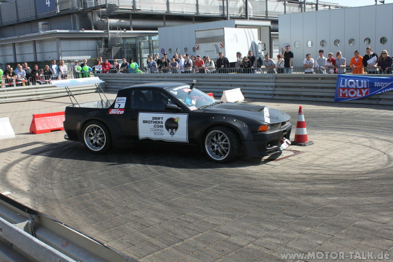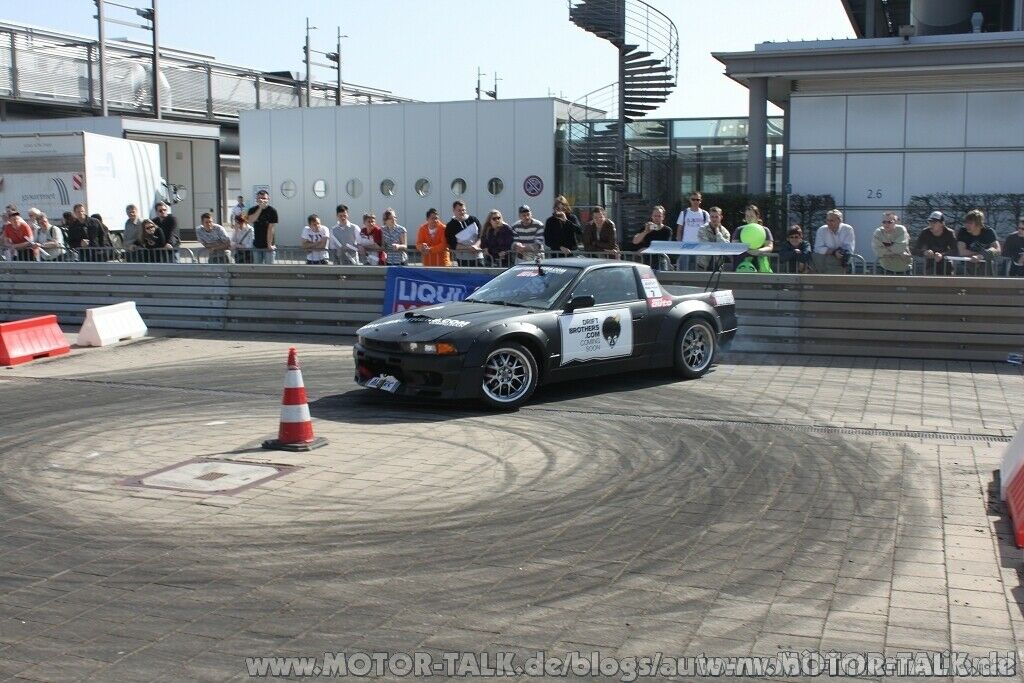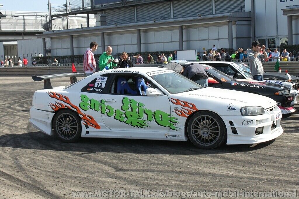 Am Ende erkennt man, dass der Skyline gegen einen E30 antritt. Danach wurden die Strecken getauscht und es gab eine Revenge. Hier noch ein paar Impressionen von weiteren Rennen: Die ganze Geschichte war ein echter Zuschauermagnet. Gegen eine Gebühr von 15 Euro konnte man auf dem Beifahrersitz Platz nehmen und sich von einem Profi über die Strecke chauffieren lassen. Besonders interessant fand ich Fahrzeuge, bei denen verständlicherweise nicht nur Wert auf die Optik gelegt wird - nach einem durchschnittlichen Rennen wäre sowieso nicht mehr viel vom Glanz eines Showcars übrig.