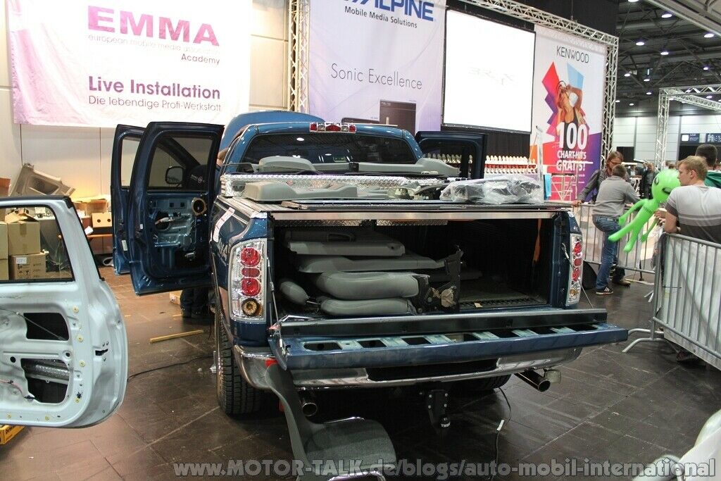 AMI Com Wichtig auf einer solchen Messe sind natürlich auch Unterhaltungssysteme für Fahrzeuge. Besonders interessant hierbei war die Live Installation einer ganzen Anlage, gezeigt an einem Dodge Ram und einem Fiat 500. Die Komponenten waren aufgelistet und jeder konnte mal einen Blick ins Geschehen werfen: Wir hatten definitiv unseren Spaß. Natürlich nicht nur mit den Exponaten