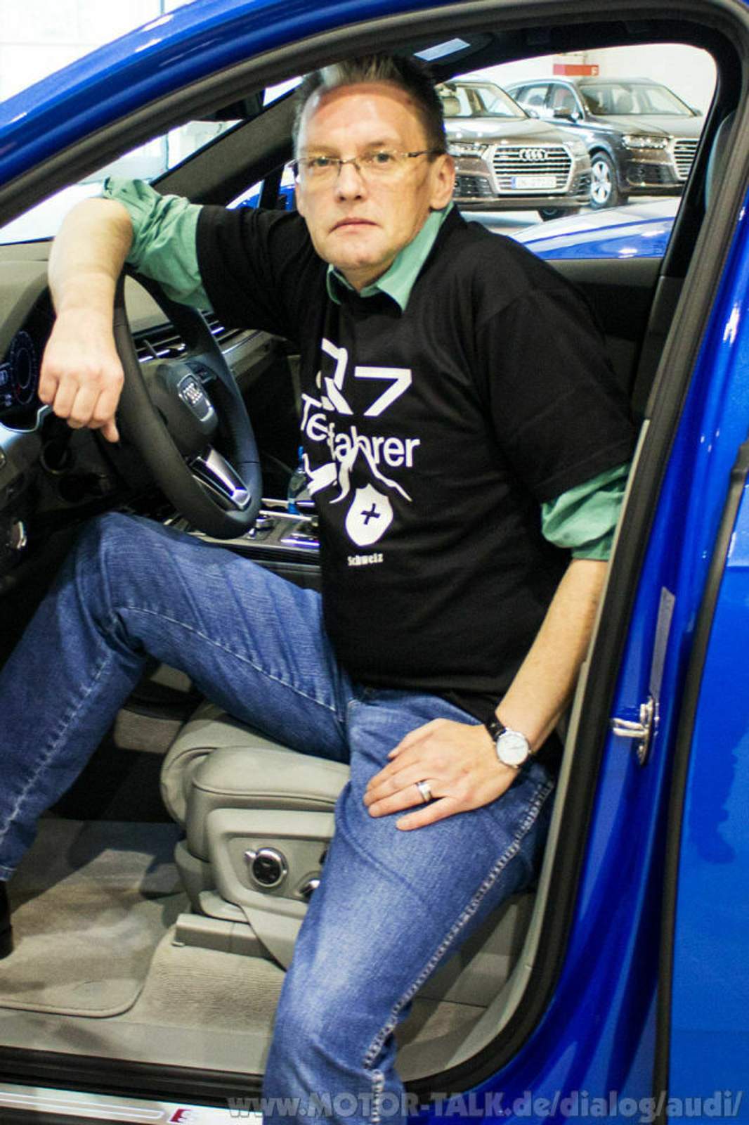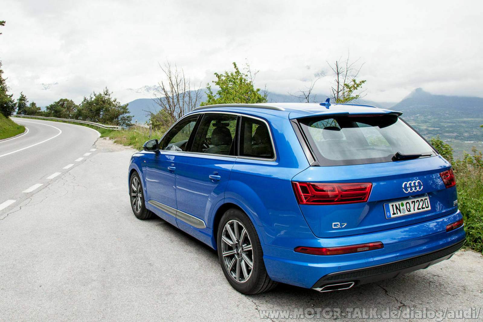 Hallo MOTOR-TALK-Freunde, was für zwei Tage ... Wahnsinn. Kai Fröhlich, Redakteur bei MOTOR-TALK, und ich waren für Euch 2 Tage in der Schweiz, um den neuen Audi Q7 bei der internationalen Pressevorstellung zu fahren und ausführlich zu testen. Unsere Anreise klappte soweit ohne Komplikationen und wir sind wie geplant pünktlich am Dienstag in Sion, auf dem kleinen Flughafen in der französischen Schweiz angekommen. Der Wetterbericht hatte uns ja schon etwas die Hoffnung genommen, dass wir hier bei knackigen 20-25 Grad die Autos in den Bergen erkunden können. Tiefhängende Wolken und dezente 10 Grad mit einer 90%igen Niederschlag-Vorhersage. Ankunft - WelcomeGleich auf dem Flughafen hatte Audi einen Hangar, gefüllt mit lauter schönen Audi Q7 in verschiedenen Motorisierungen, Farben und Ausstattungen. Während der Begrüßungspräsentation des neuen Audi Q7 wurde uns im Detail beschrieben, wie und wo Audi sagenhafte 325 Kilo Gewicht an dem Auto eingespart hat und was uns alles in den geplanten Touren erwartet. Optisch hat er sich gewaltig geändert. Sehr eckig - kantig ist er geworden, ist ja auch ein SUV und da kann es vielleicht nicht schaden. Wir hatten das "adaptive air suspension sport" in beiden von uns gefahrenen Testwagen. Dadurch ist er wenigstens im Dynamic-Modus, aus meiner Sicht, angenehm tief für einen SUV geworden. Meine persönlichen Highlights des neuen Audi Q7