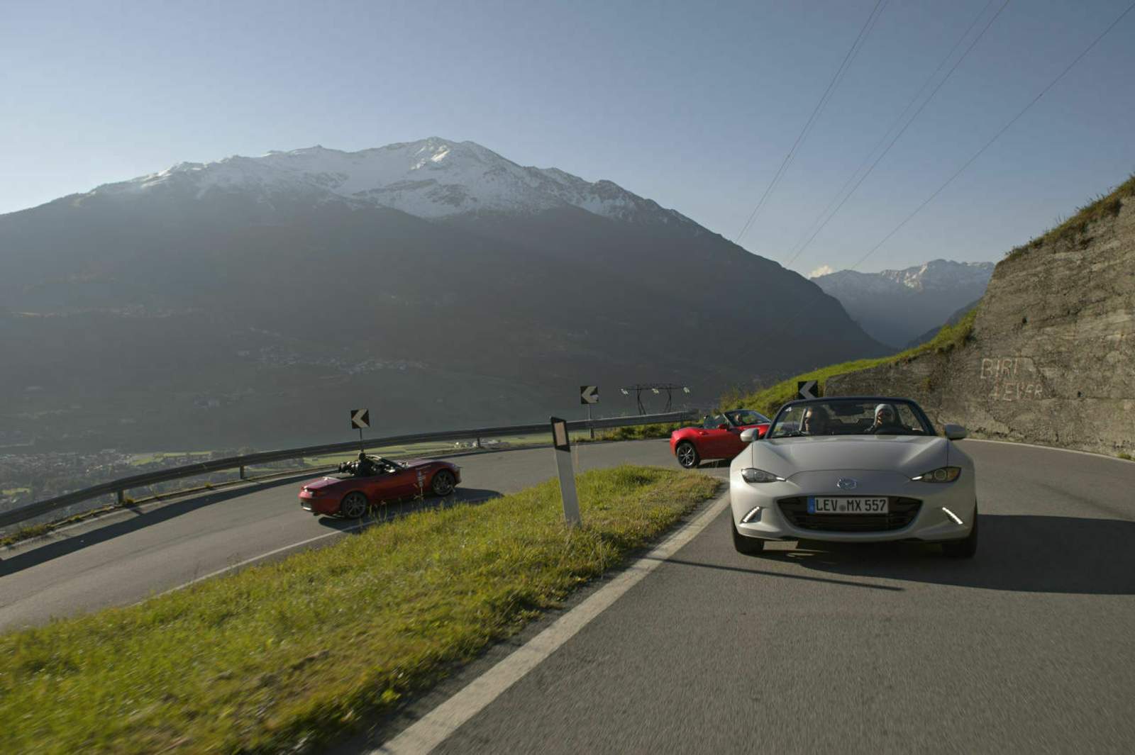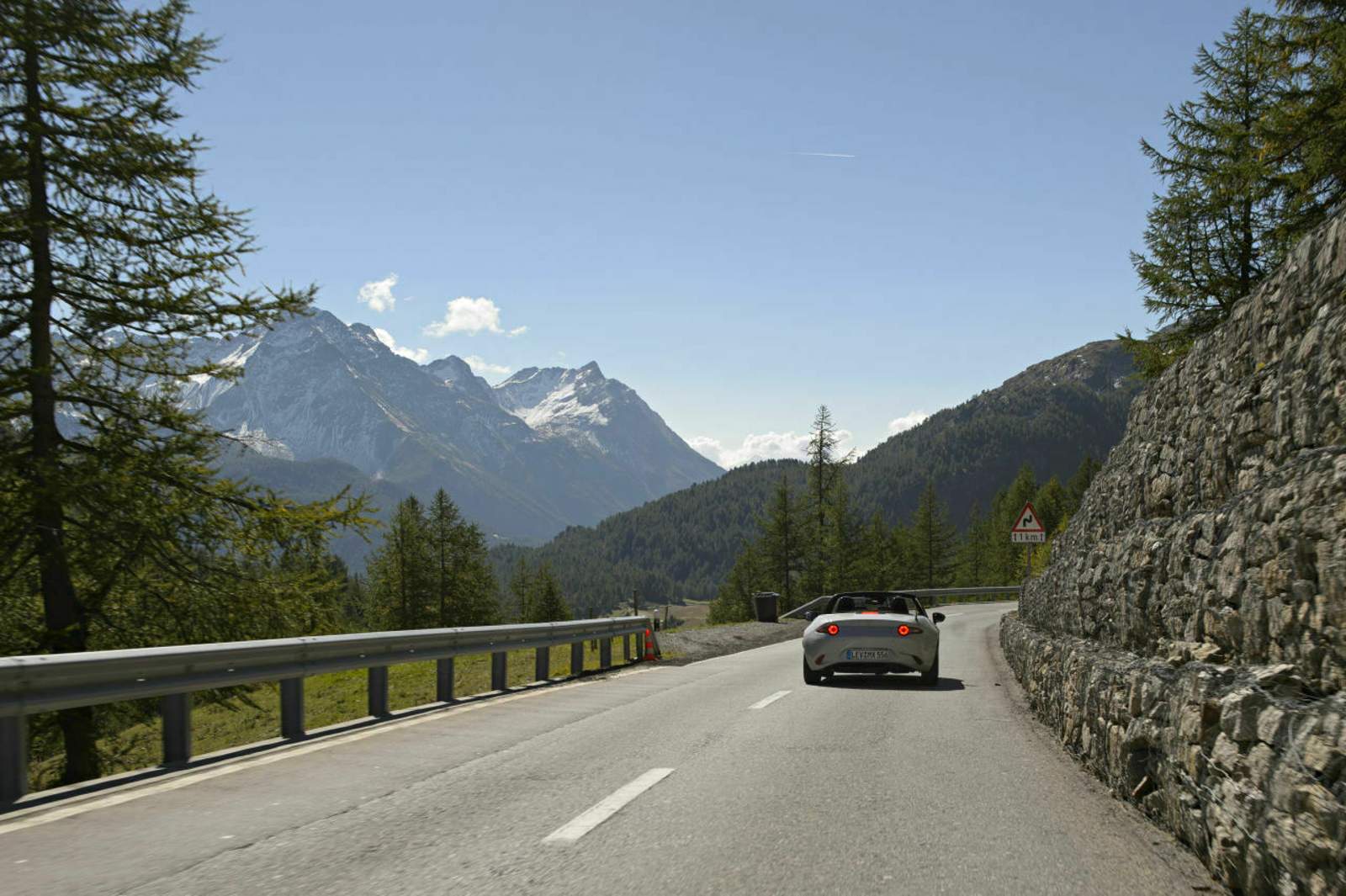 Das Schicksal meint es gut mit mir. Mika, der MOTOR-TALK Gewinner des Events ‚Kurve Deines Lebens’, ist MX-5-erfahren und arbeitet als Testingenieur bei einem Automobilhersteller. Er kann fahren. Vollbremsungen bei 300 km/h und Drifts sind sein Job. Und ich bin eine gute Beifahrerin. In jeder quergefahrenen Kurve lache ich vor Freude. So wie ich das letzte Mal als Kind gelacht habe, wenn mein Vater die Schaukel immer höher stieß. Mika und der MX-5 lassen mich kindliches Urvertrauen und Freude noch einmal erleben, auf den halsbrecherischen Serpentinenstrecken der Alpen. Hoch auf 2.500 Meter und wieder runter. Das Ganze mehrmals am Tag.