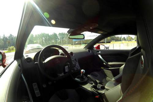 Das Fahrwerk hat seine Stärken auch ganz eindeutig eher bei der sportlichen Fahrweise. Im Alltag muss man es schon hart mögen, denn kurze Schläge kommen schon recht deutlich beim Fahrer an. Die Federn und die Dämpfer sind deutlich Straffer als bei seinem kleinen Bruder. Die 15 mm breitere, hintere Spur, sorgt für die nötige Fahrstabilität. Der RCZ R fährt tatsächlich wie auf Schienen. Unglaublich wie neutral er bei höheren Geschwindigkeiten um die Ecken geht. Das Untersteuern konnte man ihm aber wohl auch nicht ganz abgewöhnen. Wie auch, bei diesem Antriebskonzept und der Gewichtsverteilung? Man kann aber auch mit hartem Anbremsen dafür sorgen, dass das Heck mit einlenkt. Man merkt schön wie das Heck leicht wird und kann es dann beim Öffnen der Bremse mit einem Lenkimpuls steuern. Da muss ich aber noch ein wenig für üben. Die Winterreifen sind sicher ein nicht zu vernachlässigender Faktor beim Thema untersteuern. Ich kann mir gut vorstellen, dass Sommerreifen bei diesen Temperaturen deutliche Vorteile bringen würden. Die Lenkung ist eine gute Mischung aus Alltagskomfort und präzisem Arbeitsgerät. Jedoch würde ich eine noch direktere Auslegung schlicht als Konsequenz aus den sonst relativ kompromisslos sportlichen Eigenschaften sehen. Der kurze, enge Handlingkurs im Baden Driving Center ist auch eher suboptimal um die Vorteile eines frontgetriebenen Sport Coupé aufzuzeigen. Dieser kann auf der Nordschleife sicherlich mehr überzeugen, wie auch Michael Bohrer bereits mehrfach eindrucksvoll unter Beweis gestellt hat.