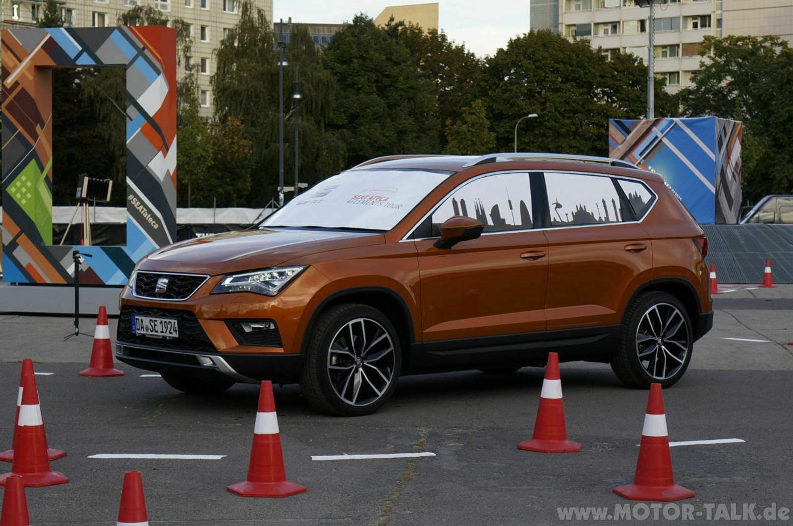 Nachdem ich bereits im Dezember 2015 einer der Glücklichen war, den Seat Ibiza Cupra in Barcelona ausgiebig zu testen, hatte ich nun erneut Glück. Seat machte mit der Ateca 4 Elements Tour Halt in Berlin und dank Motor-Talk durfte ich zusammen mit vier anderen Motor-Talkern Seats ersten SUV auf einem künstlich aufgebauten Gelände-Parcours testen. Eines muss ich aber vorab gestehen: Ich bin kein großer SUV-Fan. Trotz der aktuell großen Beliebtheit bei vielen Autokäufern erschließt sich mir einfach der Sinn nicht, insbesondere wenn die Wagen vor allem in einer Großstadt wie Berlin bewegt werden. Ich könnte mich jetzt lange über die vermeintlichen Vorteile, wie Sitzposition und Sicht nach außen (hat schon mal jemand in einem BMW X6 gesessen…?) sowie Nachteile auslassen. Aber ich lasse das an dieser Stelle lieber und wir wenden uns besser wieder dem Seat Ateca zu. Ich war einfach mal gespannt, wie so ein SUV sich in einem anspruchsvolleren Gelände schlägt, wo doch im Alltag für die meisten Fahrzeuge dieser Kategorie das größte Hindernis die Bordsteinkante beim Vorwärtseinparken darstellt. „Wie Sie sehen, sehen Sie nichts!“ Bevor ich da aber loslegen konnte, musste natürlich noch der übliche Papierkram erledigt werden. Sowohl für Seat als auch für Motor-Talk mussten meine Persönlichkeitsrechte quasi einfach mal ruhen. Dass es mein persönliches Problem ist, wenn ich mich mit dem Wagen überschlage und dabei die Birne anhaue, versteht sich von selbst. Im Anschluss gab es einen kurzen Plausch mit den beiden netten Damen von MT und dem gut aufgelegten Fotografen – wenn ich nur nicht so ein miserables Namensgedächtnis hätte… Jedenfalls ging es dann zum sogenannten Blind Drive. Die Leute von Seat dachten sich, es wäre eine großartige Idee, die Fenster komplett mit Designfolie zu bekleben, sodass ein Blick nach draußen unmöglich war. Nun, nur zum Spaß wurde das natürlich nicht gemacht. Der Wagen war mit der optionalen Top-View-Kamera (750 Euro) ausgestattet. Diese Kamera besteht eigentlich aus vier Kameras, jeweils eine unter den Spiegeln sowie an Front und Heck. Beim Einsteigen überlege ich noch, ob ich einen naheliegenden aber plumpen Spruch raushaue, entscheide mich aber dagegen. Schließlich hat der Instruktor das bestimmt schon unzählige Male gehört. Als ich mich dann auf den Fahrersitz setze, tönt es jedoch von rechts: „Wie Sie sehen, sehen Sie nichts. Das sagt normalerweise jeder, der hier einsteigt.“ Kein Kommentar… Mit der Top-View-Kamera lassen sich viele verschiedene Perspektiven auf dem Touchscreen durchschalten. Neben den einzelnen Kameras gibt es noch die namensgebende Draufsicht. Bei dieser werden alle vier Kameras zu einem Gesamtbild zusammengeschaltet und um ein Abbild des eigenen Wagens gelegt. Letztendlich wirkt es, als ob sich über dem Wagen eine Drohne in einigen Metern Höhe befindet und das Bild zum Wagen überträgt. Trotzdem, ohne eine Pylone zu touchieren oder jemandem über den Fuß zu fahren, absolviere ich den Parcours. Währenddessen merke ich, dass ich unweigerlich mit meinem Kopf immer näher an den Bildschirm gehe, bis ich eine unnatürlich verkrampfte Körperhaltung einnehme. Die technische Abhängigkeit ist dann doch recht groß, wenn von der Außenwelt nichts mehr zu sehen ist. Draußen muss dann noch einmal kurz für das Social-Media-Team von Seat posiert werden. Man verspricht mir, dass mir das daraus gebildete GIF per Mail zugeschickt wird. Gesehen habe ich davon bisher aber noch nichts. Vertraue der Macht,… ähh… der Technik Eine kurze Stärkung am Buffet und es geht weiter zum nächsten Abenteuer. Um die Geländefähigkeiten des Atecas zu testen, hat Seat vier verschiedene Elemente aufgebaut. Dass Seat die Elemente so zusammengestellt hat, dass das neueste Derivat der Spanier nicht hängen bleibt und panisch mit den Rädern scharrt, ist selbstverständlich. Trotzdem sind die Hindernisse nicht ganz anspruchslos und fordern die Technik das Seats doch etwas, wie sich noch zeigen wird. Beim ersten Durchgang muss ich noch auf dem Beifahrersitz Platz nehmen. Der Instruktor erklärt mir kurz die Technik. Mit dem optionalen Allradantrieb (1.850 Euro Aufpreis) hat man die Möglichkeit, die Fahrmodi „Gelände“ und „Schnee“ auszuwählen. Im gewählten Modus „Gelände“ wird die Gaspedalkennlinie etwas entschärft und die Bergabfahrhilfe ist automatisch aktiv, erklärt mir der gute Mann, dessen Namen ich mir natürlich nicht gemerkt habe. Mit Lässigkeit durchfährt er die einzelnen Elemente des Parcours und weist auf die jeweiligen Knackpunkte hin. Im Anschluss darf ich dann endlich selbst ans Steuer. Das erste Hindernis testet die Verschränkung des Atecas und fordert die elektronische Sperre. Insbesondere Letztere muss ganze Arbeit leisten, erfordert vom Fahrer aber etwas Mitarbeit. Zwischendurch hängen schon mal zwei Räder in der Luft und da das System auf Drehzahlunterschiede der einzelnen Räder mit Bremseingriffen reagiert, muss auch mal etwas mehr Gas gegeben werden als einem die inneren Warnsignale es eigentlich signalisieren. Erst dann checkt das System, dass es eingreifen muss und simuliert eine Sperre. Anderenfalls kippelt man nur hilflos vor und zurück. Man muss also einfach etwas der Technik vertrauen. Lob vom Instruktor Das nächste Hindernis stellt eine künstliche Düne dar. Diese wird nicht frontal, sondern in einem Winkel von etwa 45° überfahren. Dies bewirkt einerseits, dass der Ateca auf der Spitze nicht aufsetzt. Andererseits sorgt es auch dafür, dass irgendwann das linke Vorderrad in der Luft hängt, am Umkehrpunkt erneut zwei Räder den Kontakt verlieren und der Wagen nach vorne kippt. Auch hier heißt es, gefühlvoll aber beherzt Gas geben und anschließend im richtigen Moment noch beherzter auf die Bremse latschen. An dieser Stelle werde ich sogar vom Instruktor kurz gelobt. Es haben bisher wohl nur Wenige das so sanft geschafft. Das Ego fühlt sich gestreichelt und ich bi