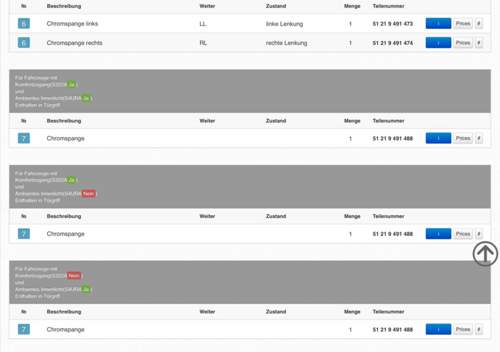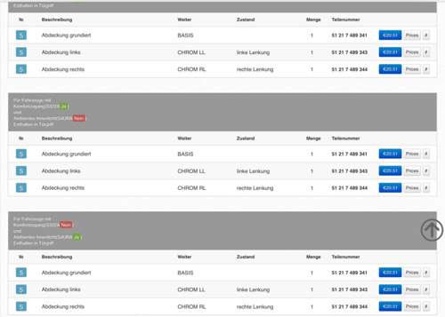 könntest Du mir vielleicht einen Gefallen tun, wo auch immer Du nachgesehen hast und diese Teilenummern prüfen, was er bei Dir ausspuckt? Und mir vielleicht sagen, wo Du nachgesehen hast?