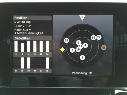 Nach der vierten Neuberechnung meinte Anna dann aber auf einmal: "Keine Routenberechnung möglich" (siehe Anhang). Und dass obwohl ich mitten auf einer Bundesstraße fahre. Die Satelliteninformation ergab, dass 9 Satelliten gut empfangen werden was eine Positionsgenauigkeit von 1 m ergibt. Also eigentlich alles im grünen Bereich. Auch mehrfache Aufforderungen an Anna es nochmal zu versuchen erwiedert sie mit dem gleichen Kommentar.