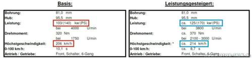 Denn auch der 140 PS fährt genauso schnell, zumindest wenn die V-Maxbegrenzung raus ist.
