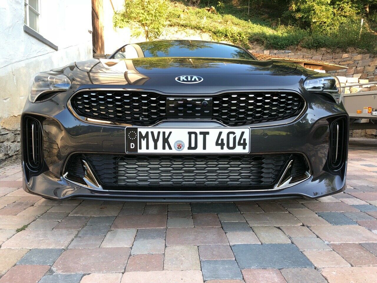Ich versuche es erstmal mit Schrauben, Abschluss des Kennzeichens oben mit diesem schwarzen Gummi- oder Kunststoffblock und denk mir einfach: Funktion vor Design, ist dann der erste Stinger mit Kennzeichen - Bumper.