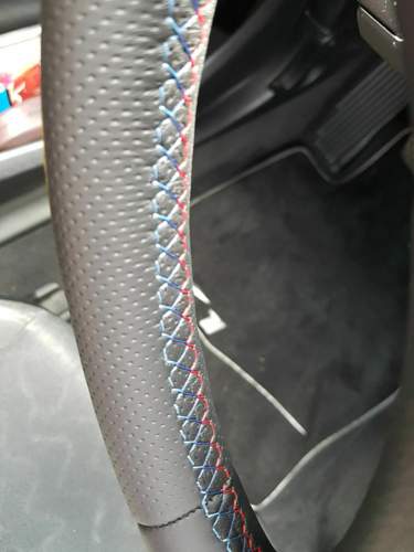 Schon ein schönes und vor allem fettes Lenkrad - die „M-farbigen“ Nähte gefallen mir. Warum bietet BMW so etwas nicht ab Werk an? Zwar krümelt mein Lenkrad im F15 nach 35 t km noch nicht (und das in unserem F11 nach fast 60 t km auch noch nicht), aber die S-Line Lenkräder in meinen beiden A6 4G sahen nach 100 t km noch nicht so fertig aus wie die jetzt in den beiden F - waren aber auch sehr dünn.