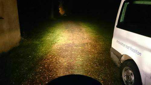 Allerdings sind bei den normalen Reflektorscheinwerfer die Ränder noch immer etwas mit ausgeleuchtet. Bei den DE-Scheinwerfern eher nicht.