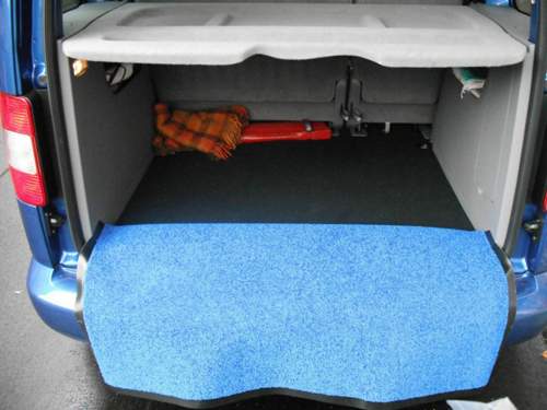Ich habe mir einen Poli Propylen Teppich mit gummierter Unterseite unter die hintere Kunststoffleiste (mit den Verzurrösen) geschraubt. Im Bedarfsfall schmeisse ich dem Teppich nach hinten über die lackierte Stoßstange und damit ist der Lack geschützt. Schwere Gegenstände rutschen besser über die Teppichfaser, als über die Gummierung, daher habe ich den Teppich mit der Gummiseite unten/ zur Stoßstange hin gewählt und komme bestens klar damit. Wenn ich den Teppich nicht rauswerfen muss, sieht es zudem besser aus, wenn die schwarze Unterseite des Teppichs dann im Laderaum sichtbar ausliegt, da der Teppich nicht bis an die Sitzreihe reicht. Wenn ich ihn so lang gelassen hätte, würde er beim Rauswerfen bis auf den Erdboden reichen und dann kann man sich viel Dreck ins Auto holen.
