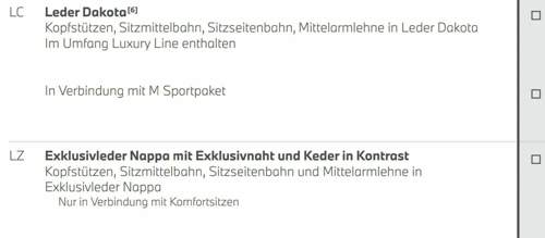 Der Quelle würde ich nur bedingt trauen, da dort zB nicht steht, dass bei belüfteten Nappasitzen die Sitzmittelbahn aus Dakota-Leder besteht.