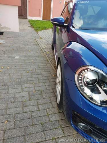 habe gestern mal die 15er Platten, die ich noch von unserem Golf 7 über hatte, vorne und hinten einseitig an den Beetle gebaut. Tiefergelegt 25 vorne, 40 hinten mit H&R Federn, Felge Ravenna 7x17 ET43. Sieht super aus, ist aber zumindest vorne beim Einfedern meiner Meinung nach einen Tacken too much. Habe die jetzt hinten verbaut und noch einen Satz aus 12er und 10er Scheibe bestellt. Dann kann ich probieren und auch noch entscheiden, ob die 12er dann doch nach hinten wandern und die 15er wieder raus fliegen. Mir ist mit den 15ern nämlich aufgefallen, dass die Hinterachse doch einen deutlichen seitlichen Versatz hat. Rechts passt es mit den 15ern optimal, links steht das Rad fast 5 mm weiter vor. Das sieht man auf den ersten Blick und sieht auch nicht so gut aus wie auf der rechten Seite, weil die Ravenna ein deutlich hervorstehende Reifenflanke erzeugen und die dann als einzig sichtbarer Teil des Reifens überstehen.