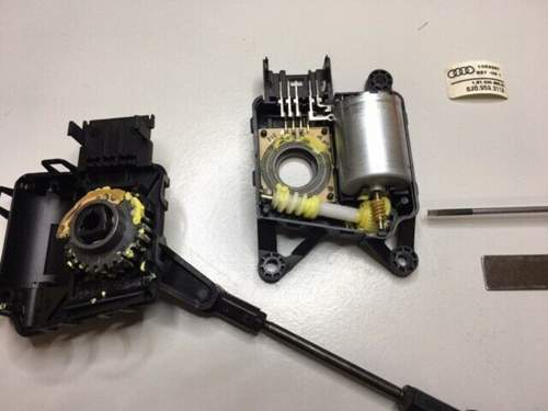 Ich habe daraufhin den Stellmotor vorsichtig geöffnet und ein ziemlich verdrecktes Potenziometer vorgefunden.