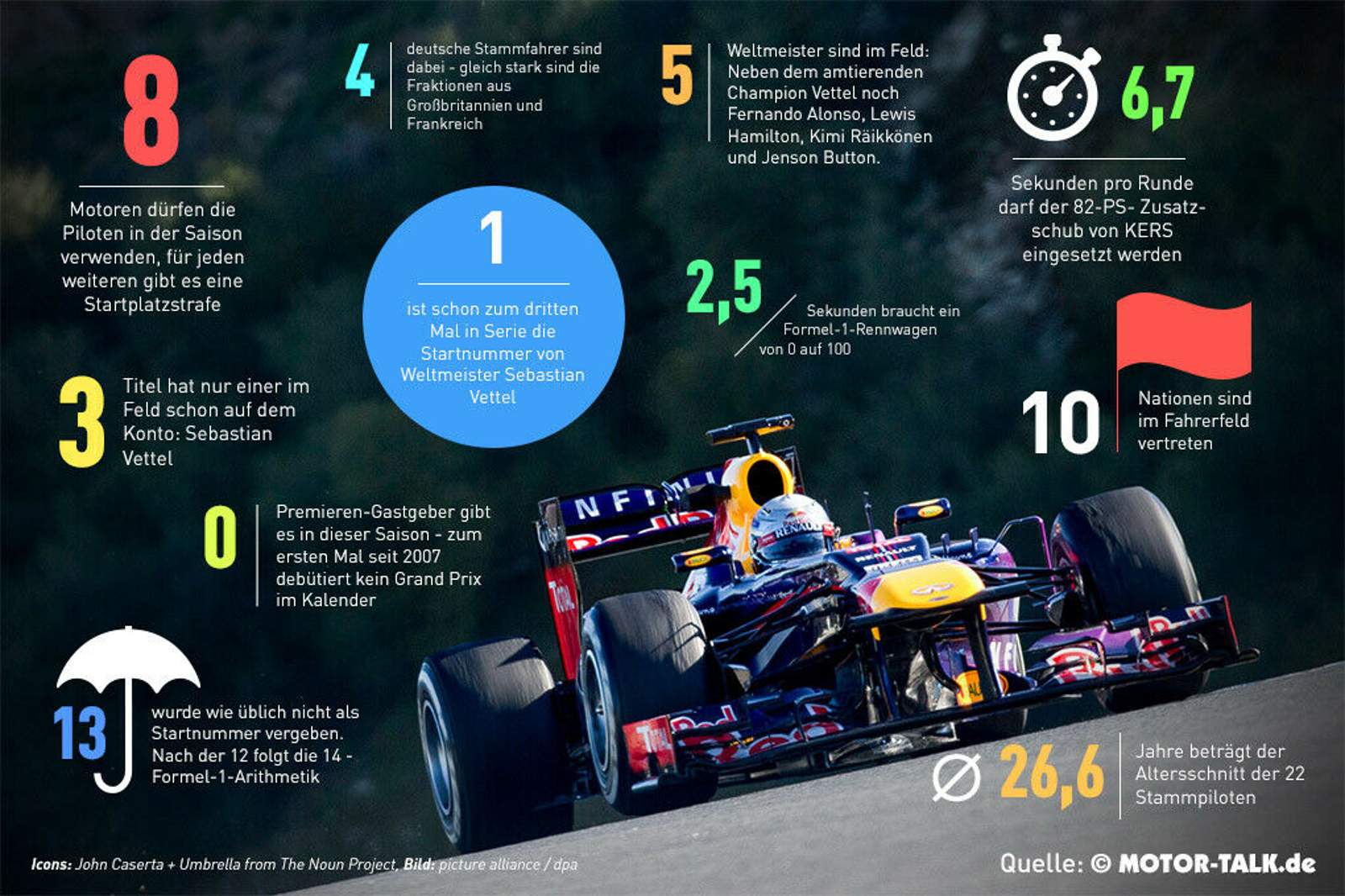 Morgen um 7.00 unserer Zeit startet das erste Rennen der neuen Formel-1-Saison. Wir haben die 21 wichtigsten Zahlen zur neuen Saison in zwei Infografiken zusammengefasst.