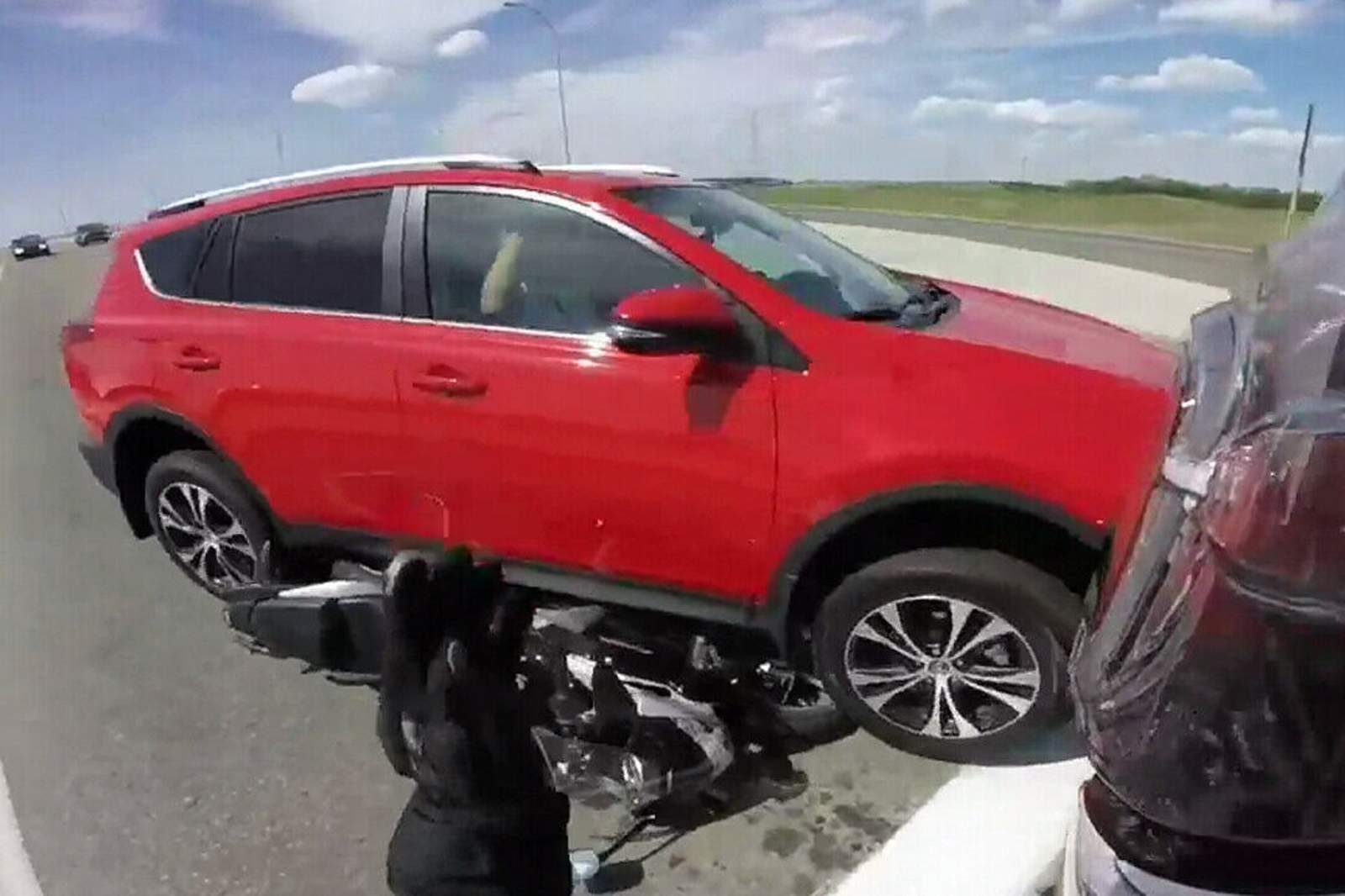 Sacramento/USA – Viele Unfälle lassen sich vermeiden. Manchmal mit einem kurzen Blick durch die Heckscheibe. Doch wenn es zu spät ist, dann geht es um die richtige Reaktion. Um wichtige Entscheidungen in kurzer Zeit. Wie im Video von Reddit-Nutzer „x_ing“: Der Biker aus Kalifornien entschied sich innerhalb von drei Sekunden, seine Honda CBR 250R zu opfern. Was war passiert? X_ing steuerte neben einem Fahrschüler in einem Toyota RAV4 auf eine Ampel zu. Er stoppte rechtzeitig, das SUV rollte auf die Kreuzung. Der Fahrer legte den Rückwärtsgang ein und steuerte sein Auto zurück zur Haltelinie. Beim Zurücksetzen wechselte er die Spur und fuhr direkt auf das Motorrad zu. X_ing gestikulierte, stieg ab und legte sein Motorrad auf den Asphalt. Das Auto rollte über seine Honda und blieb darauf stehen. Unfall: Auto rollt auf MotorradDas Video des Unfalles sammelte in wenigen Stunden viele Klicks und Kommentare. Im Motorrad-Unterforum von Reddit diskutierten Nutzer über die Reaktion des Fahrers. Er hätte beiseite rollen und damit sein Bike retten können, sagen viele. Genervt von Beleidigungen und Ratschlägen erklärt X_ing die Situation. Womöglich hätte ein erfahrener Biker rechtzeitig ausweichen können, räumte er ein. Er habe dieses Risiko nicht eingehen wollen – womöglich hätte er die Schuld am Unfall getragen. Zudem habe er lange daran gezweifelt, dass der Toyota-Pilot tatsächlich die Spur wechselt und in seine Richtung steuert. Sein Bike verliere Sprit und Öl, Lenker und Kühler seien verbogen und Blinker und Verkleidung seien gebrochen. Nichts, was sich nicht reparieren oder ersetzen lässt. Aufgrund der Kommentare hat X_ing sein Video mittlerweile aus dem Netz genommen. Die wichtigste Szene seht Ihr hier. |