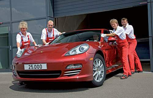 Porsche hat im abgelaufenen Geschäftsjahr 2009/2010 (31. Juli) den höchsten Umsatz in der Firmengeschichte erzielt. Auch über steigenden Absatz konnte der scheidende Unternehmenschef Michael Macht jetzt berichten. Angaben zum Ergebnis machte Porsche noch nicht, dies wird der neue Chef Matthias Müller demnächst nachholen. Vom neuen, im September 2009 eingeführten Panamera konnte Porsche den Angaben zufolge 20.615 Einheiten absetzen. Volumenstärkste Baureihe blieb - trotz oder wegen - des Modellwechsels der Cayenne mit 29.855 Verkäufen, das sind 12,5 Prozent weniger als im Vor-Geschäftsjahr. Die Verkäufe der Baureihe 911 sanken deutlich um 27,4 Prozent auf 19.663 Einheiten. Der Absatz der Boxster-Baureihe nahm um 10,8 Prozent auf 11.717 Einheiten ab. Davon entfielen 6.865 Fahrzeuge auf den Roadster Boxster und 4.852 Einheiten auf den Cayman. Unterschiedlich verlief die Entwicklung in den wichtigsten Verkaufsregionen der Welt. Der Absatz außerhalb der Stammmärkte in Europa und Nordamerika wuchs kräftig um 25,8 Prozent auf 25.283 Fahrzeuge. Allein auf China entfielen davon 11.724 Einheiten, 47,5 Prozent mehr als im Vergleichszeitraum. In Europa konnten die Absätze leicht um 1,4 Prozent auf 30.948 Einheiten gesteigert werden. Davon wurden in Deutschland 11.857 Fahrzeuge abgesetzt, 3,5 Prozent weniger als im Vorjahr. Auf dem nordamerikanischen Markt konnte Porsche mit 23.705 verkauften Fahrzeugen um 4,6 Prozent zulegen. Produziert wurden im abgelaufenen Geschäftsjahr insgesamt 89.123 Fahrzeuge, ein Plus von 16,1 Prozent. In Leipzig liefen 32.215 Einheiten der Baureihe Cayenne und 24.494 Fahrzeuge des neuen Panamera von den Bändern. Im Stammwerk Stuttgart-Zuffenhausen wurden 20.159 Elfer gebaut, das waren 27,4 Prozent weniger als im Vorjahr. Die Boxster-Baureihe erreichte insgesamt 12.255 Einheiten, ein Rückgang von 14,9 Prozent. Die Zahl der Mitarbeiterinnen und Mitarbeiter stieg bis zum Ende des Geschäftsjahres um ein Prozent auf 12.722 Personen, darunter 340 Auszubildende. Der überwiegende Teil davon, 10.880 Arbeitnehmer, waren im Inland beschäftigt. Zum Monatsende steht bei Porsche wie berichtet der Chefwechsel an. Michael Macht, der in den VW-Konzernvorstand wechselt, übergab den Stab am Mittwoch Abend in Paris an Matthias Müller, bisher Leiter Produktplanung, Produktmanagement und Modellreihen für den VW-Konzern und die Marke Volkswagen.