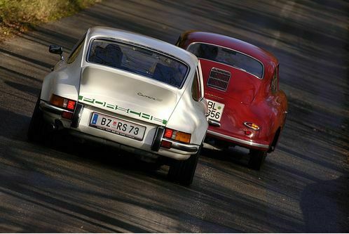 Carrera - so hießen hoch konzentrierte, schnell wirksame Porsche. Ihre gefährliche Nebenwirkung: Sie machen unglaublich süchtig. Ihr Risiko: Sie sind schneller, als die Polizei erlaubt. Porsche 356 A und Porsche 911 2.7 RS im Selbstversuch. Eine diffuse Wintersonne scheint durch die trüben Sprossenfenster der alten Fabrikhalle und taucht ihre Schätze in warmes Licht. Drei Reihen Porsche-Automobile stehen auf dem besenreinen Betonboden, 356 und 911 wechseln sich ab. Bunte Farbtupfer der frühen Siebziger, mit den Ziffern 2.2, groß im Heckfenster und 2.4 klein auf der Motorhaube, blitzen zwischen dem seriösen Grau später 911 SC-Modelle auf. Porsche-Mann aus Leidenschaft und Überzeugung Locker dazwischen gestreut die Porsche 356er, vom schmucklosen A-Grundkörper, Tropfenform angewandter Aerodynamik, bis zum üppig dekorierten finalen C-Typ, dessen Chromschmuck samt Stoßstangenzier wie ein notwendiges Zugeständnis an Porsches wichtigsten Exportmarkt wirken. Hier sollen die beiden Carrera stehen. Ein Porsche 356 A mit dem legendären Königswellen-Motor und ein Porsche 2.7 RS, der ungestüme Alte und der rassige Neue, der auch schon über 30 ist, aber immer noch hinreißend modern wirkt. Dies ist das Reich von Ande Votteler, 48, aus Balingen. Ande restauriert Porsche, kauft und verkauft sie, nur Heckmotormodelle. Seine Telefonnummer lautet 356911. Sie sagt alles, sie ist Programm. Der verbindliche Mann mit dem langen Haarzopf betreibt sein Geschäft aus Leidenschaft. Er ist persönlich betroffen. Keiner von denen, der auf alte Porsche setzt, weil sich gerade gutes, schnelles Geld damit verdienen lässt. Dass der gelernte Maschinenbau-Ingenieur warten kann, zeigt seine Friedhofsgalerie im Gegenlicht unter dem breiten Band der Sprossenfenster. Fünf Porsche 356er, allesamt traurige Zeugen der Vergänglichkeit, aber nicht für ewig verloren. Ein ausgebeinter Karosserietorso thront auf einem Stahlgestell über ihnen. Einer hat den Absprung bereits geschafft, der Plattformrahmen mit den Kastenprofilen ist schon geschweißt und grundiert, die Keimzelle neuen Porsche-Lebens somit entstanden. Erwartungsvoll fällt der Blick schließlich auf die beiden Porsche Carrera drüben hinter dem alten Allrad-Mercedes der Bundespost. Wehrhaft eingekleidet als riesig grauer Fernmelde-Koffer wirkt der grimmige Langschnauzer wie ein Wachhund, der sich schützend vor den Porsche 356 A Carrera und den Porsche 911 Carrera 2.7 RS stellt. Traumwagen: Königswellen-Porsche 356 A und ein echter Porsche 2.7 RS Es sind die wertvollsten Autos in Andes alter Fabrikhalle. Der weiße Porsche 2.7 RS mit grüner Kriegsbemalung und dem typischen Entenbürzel. auf der Motorhaube ist echt. Er gehört einem Kunden aus Vorarlberg, Ande taxiert das Top-Auto mit der wohnlichen Touring-Ausstattung auf 100.000 Euro. Ein herrlicher Wagen, groß und gestreckt. Zugegeben, er liegt ein bisschen tiefer auf breiteren 60er-Reifen vorn und 65ern hinten. Er ist sehr dezent, es steht ihm gut. Gefälschte gibt es viele. Der Mythos Carrera RS macht Männer schwach. Selbst Tugendhafte erliegen der Versuchung, aus einem Porsche 2.4 S einen Porsche RS zu machen. Man sollte es lassen, unbedingt, es macht nicht glücklich, nicht auf Dauer. Merkt euch, ein Porsche 2,4 S ist auch was Schönes. Der erdbeerrote (original-Farbname) Porsche 356 A 1500 GS Carrera, wie er mit vollem Adelstitel heißt, ist zu verkaufen. "Dieses Auto, ein ultraseltener Leichtbau-GT mit Schalensitzen und Plexiglas-Scheiben, leistet 110 statt 100 PS wie die anderen Fünfzehnhunderter. Es kommt aus Schweden und hat eine Renngeschichte. So wunderbar restauriert und original kostet der Wagen 210.000 Euro", sagt Ande. Die Zahl steht klirrend wie die Kälte im Raum und verwandelt die Halle für Sekunden in eine Kathedrale. "Die Windschutzscheibe ist natürlich aus Sekuritglas", fügt er lächelnd, der Korrektheit halber, hinzu. Porsche 356 A trägt die Gene des 550 Spyder in sich Man nähert sich dem Königswellen-Carrera mit Ehrfurcht, das Porsche A-Modell mit den zarten Stoßstangen wirkt fragil. Schon sein Nummernschild vorn verstößt gegen das Reinheitsgebot der schlichten Karosserie, die Erwin Komenda zeichnete und die noch bei Reutter entstand. Stromlinie sei Dank. Denn bereits der erste Porsche Carrera mit dem 100-PS-Königswellen-Boxer rannte laut auto motor und sport (9/1956) 198 km/h, ein Zweiliter-Carrera 2 der B-Reihe schaffte mit 30 Mehr-PS gerade einmal 203 km/h. Die üppige B-Karosserie fordert ihren Tribut. Sehen, Fühlen, Riechen, die Sinne sind gespannt auf das Erlebnis Porsche 356 Carrera. Der ebenso klang- wie kraftvolle Name kommt von der Carrera Panamericana. So hieß in den fünfziger und sechziger Jahren ein mörderisches Langstreckenrennen im Grenzgebiet der USA und Mexiko, bei dem Porsche nicht ganz erfolglos war. Ursprünglich heißt Carrera so viel wie Runde, Rundkurs oder Lebenslauf. Das lateinische "currere" stand Pate, und Karriere kommt - wen wundert es - auch daher. Die Gene des Porsche 356 Carrera stammen vom Mittelmotor-Rennwagen Porsche 550 Spyder. Diese kompromisslose Fahrmaschine mit Alu-Karosserie befeuerte ein neu konstruierter, besonders aufwändiger Vierzylinder-Boxermotor. Porsche-Chefkonstrukteur Ernst Fuhrmann, später als Vater des Frontmotor-V8-Boliden Porsche 928 bekannt, schwor im Sommer 1952 dem Käfer-Konzept mit Stoßstangen ab und zog alle Register zeitgenössischen Maschinenbaus, die sich beim Porsche 550 Spyder mit infernalischem Lärm austobten. Vier obenliegende Nockenwellen, von vier Königswellen angetrieben, garantieren ungebremste Drehfreude. Ultrakurzhubige Auslegung, Trockensumpfschmierung, eine rollengelagerte Hirth-Kurbelwelle und die Brennraum-Halbkugeln mit V-förmig hängenden Ventilen samt Doppelzündung schufen einen Jahrhundertmotor mit Referenzcharakter. Macht 73,5 PS Literleistung, noch Fragen? Ingeniöses Meisterwerk: Fuhrmann-Königswellen-Boxer im 356 Königswellen bedeutet beim Boxermotor den König